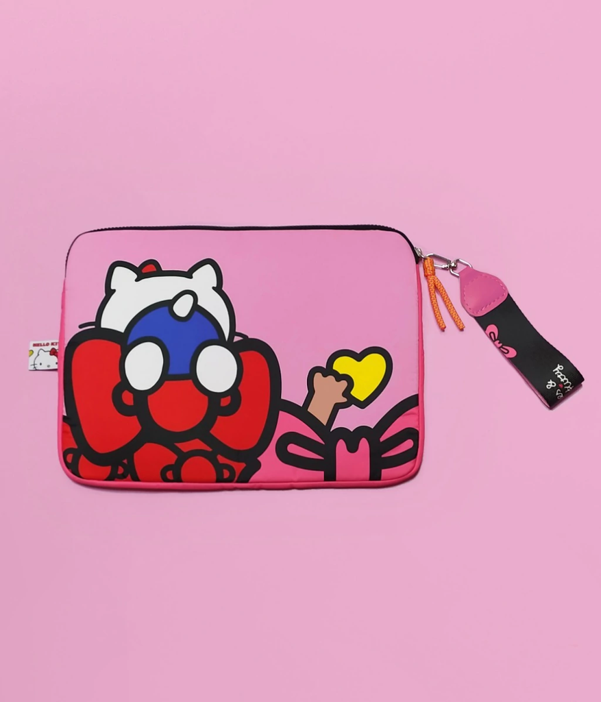 Funda con cierre para laptop 13’’. Kitty y Sofía a pura diversión! Está confeccionado en poliéster acolchonado para que proteja tu compu. El detalle que amamos: un llavero desmontable estampado súper cute. En su interior tiene un divisor para que puedas guardar un cargador, portfolio o cualquier otra cosa que prefieras!