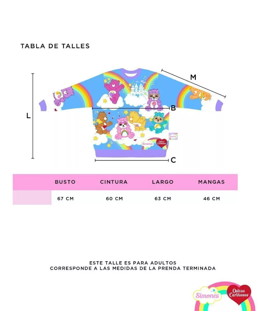 Buzo liviano, ideal para estrenar esta primavera. La paleta de colores lo hace irresistible. Una prenda canchera, feliz y de culto a los 90’s. Confeccionado en un blend de poliester, efecto french terry. Es una tela de punto súper linda que acompaña perfecto el calce suelto de este buzo, con puño en mangas y cintura. Tiene terminaciones re lindas. Este buzo tiene la estampa más emblemática de la Collab, es uno de los items especiales de esta Colección: dos mundos con los personajes más tiernos y amigables se unen para traer color y alegría. Estamos felices de conectar a varias generaciones, Ositos Cariñosos fue parte de nuestra infancia y hoy están de vuelta, los amamos! PREVENTA: Este producto está en proceso de producción y se despachará dentro de un plazo máximo de 10 a 15 días hábiles después de realizada tu compra.