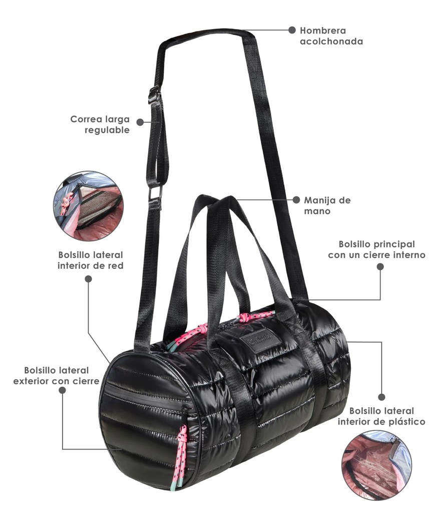 Elevate your style with the new sporty bag! A esta nueva línea puffer no le podía faltar el famoso Sporty Bag, no puede más de canchero! Es el bolso ideal para usarlo todo el día, es súper amplio y cómodo. Esta versión puffer cuenta con muchos más compartimentos para guardar tus cosas, tiene su interior un bolsillo con cierre, dos espacio de guardado y dos bolsillos más en sus laterales, uno de red y otro de pvc cristal, para poner la ropa after gym. Además se le sumaron en los laterales de afuera dos bolsillos más, todos con cierre engomado negro, una locura de hermoso! Tiene manijas cortas y una correa larga regulable con hombrera acolchonada para colgar al hombro y te sea más cómodo. Súper práctico! Acerca de Simones Puffer: ¡Presentamos la nueva colección 2023! Renovamos colores y sumamos accesorios. Está pensada y diseñada desde el packaging hasta el producto, considerando a la persona como una amante de nuevas aventuras y viajes. Los productos son atemporales y funcionales sin perder estilo: esta serie se distingue con “the rubber badge'', la nueva etiqueta de goma de la colección. Además ahora incluye una funda con una estampa hermosa para que puedas guardarla en tu vestidor.