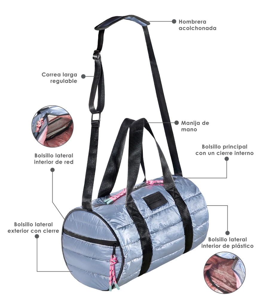 Elevate your style with the new sporty bag! A esta nueva línea puffer no le podía faltar el famoso Sporty Bag, no puede más de canchero! Es el bolso ideal para usarlo todo el día, es súper amplio y cómodo. Esta versión puffer cuenta con muchos más compartimentos para guardar tus cosas, tiene su interior un bolsillo con cierre, dos espacio de guardado y dos bolsillos más en sus laterales, uno de red y otro de pvc cristal, para poner la ropa after gym. Además se le sumaron en los laterales de afuera dos bolsillos más, todos con cierre engomado negro, una locura de hermoso! Tiene manijas cortas y una correa larga regulable con hombrera acolchonada para colgar al hombro y te sea más cómodo. Súper práctico! Acerca de Simones Puffer: ¡Presentamos la nueva colección 2023! Renovamos colores y sumamos accesorios. Está pensada y diseñada desde el packaging hasta el producto, considerando a la persona como una amante de nuevas aventuras y viajes. Los productos son atemporales y funcionales sin perder estilo: esta serie se distingue con “the rubber badge'', la nueva etiqueta de goma de la colección. Además ahora incluye una funda con una estampa hermosa para que puedas guardarla en tu vestidor.