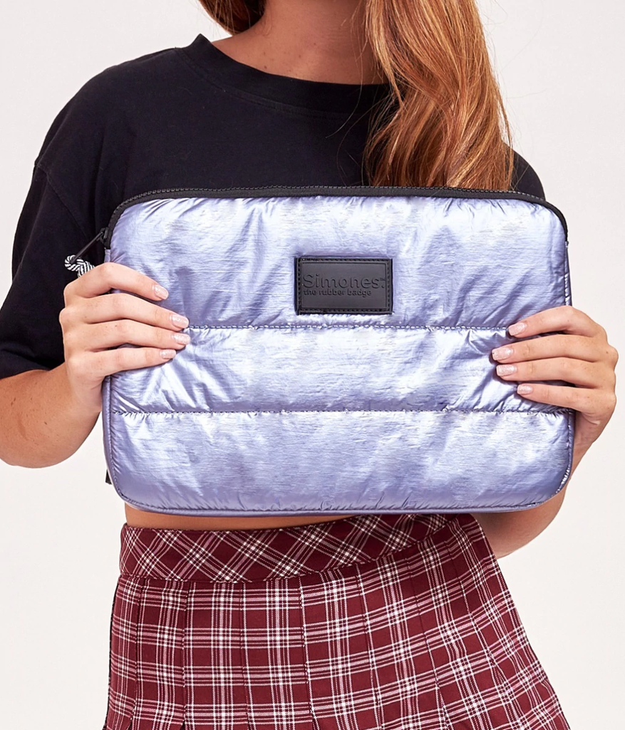 Travel in style, pack light, it's the new perfect match! Con la nueva funda puffer además de que tu laptop va a viajar súper segura vos no vas a perder el estilo! Es ideal para llevarla en la mochila puffer de esta nueva línea. Está confeccionada en siré y viene disponible en dos colores: Black, un clásico que jamás pasa de moda y Ice, un color único para aquellos que les gusta salir de lo clásico. Te vamos a contar lo que amamos de este productazo: . Es puffer, acolchada y liviana, fácil de comptactar en viajes y fácil de limpiar. Win win . En su interior tiene un compartimento divisor. . El cierre vislon y tiracierres de cordón con color le dan un acento de color hermoso. Acerca de Simones Puffer: ¡Presentamos la nueva colección 2023! Renovamos colores y sumamos accesorios. Está pensada y diseñada desde el packaging hasta el producto, considerando a la persona como una amante de nuevas aventuras y viajes. Los productos son atemporales y funcionales sin perder estilo: esta serie se distingue con “the rubber badge'', la nueva etiqueta de goma de la colección. Además ahora incluye una funda con una estampa hermosa para que puedas guardarla en tu vestidor.
