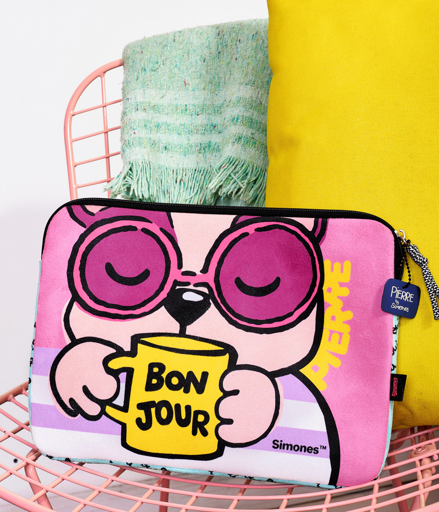 Funda con cierre para laptop 13’’. Volvió Pierre con pura diversión! Está confeccionado en gamuza acolchonado para que proteja tu compu. El detalle que amamos: el estampado súper cute. En su interior tiene un divisor para que puedas guardar un cargador, portafolio o cualquier otra cosa que prefieras!