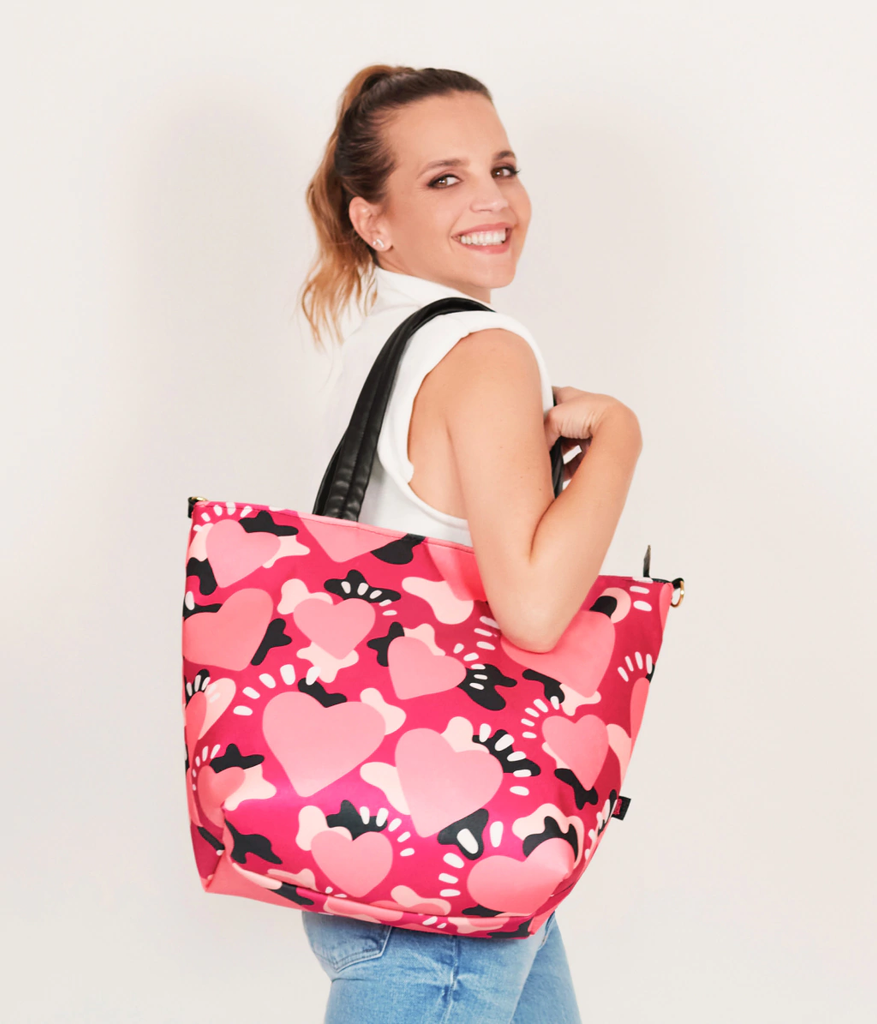 Creciendo juntas: la Colección Cápsula junto a Sabrina Garciarena nos llena de amor. Para esta segunda etapa se pensó en un doble juego: la versión Mom & Daughter de cada producto para representar ese vínculo tan único y especial. Los Patterns florales y de corazones siguen siendo los elegidos, se renovaron con una paleta de colores bien cálida para una representar esta mirada dulce y romántica. El resultado es una Colección adorable, en donde todos los estampados que caracterizan cada producto están en perfecta armonía de colores para generar combinaciones de uso diferentes. Este bolso Tote con cambiador es súper funcional y canchero. Ideal para actividades durante todo el día y llevar todo lo necesario para las dos. El pattern de corazones es trendy y combinable! Confeccionado en cordura, una tela muy resistente de fácil limpieza y cuidado. Sus manijas son de cuero ecológico y tiene una correa larga regulable. Se accede al compartimento principal mediante cierre, y al abrir se descubre un interior amplio con un bolsillo divisor. El cambiador: es un complemento divino del bolso, muy mullidito y acolchado. Amamos el estampado en perfecta armonía con el bolso tote.