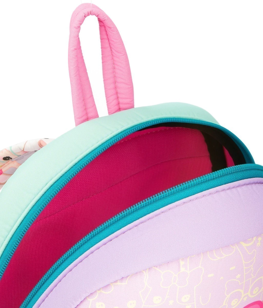 La nueva mochila de Kawaii es muy colorida y súper dulce! El tamaño es apto kindergarten. Nos encanta porque es divina para llevar ya que es toda blandi ta y acolchada. Es adorable. Su acceso principal es con cierre y sus manijas tienen cintas regulables. Detalles que amamos: Gina con su arcoiris escondida en el lateral. ATENCION: Este producto se despacha a partir del 11/12
