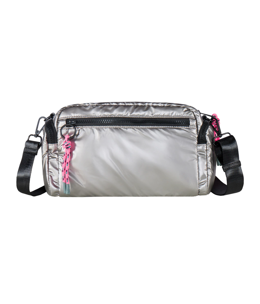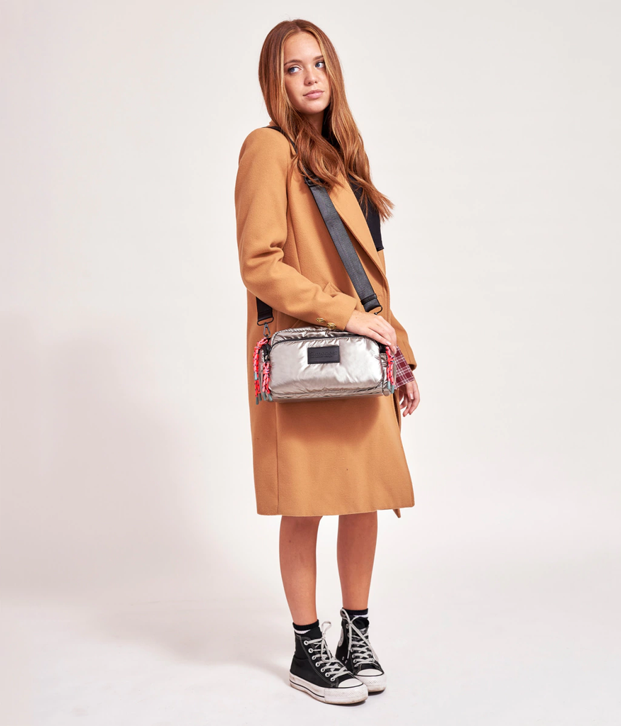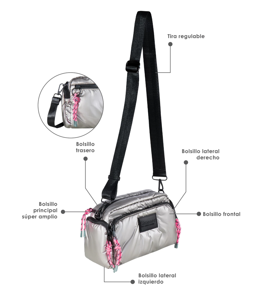 Puffer news! Se suma un nuevo producto a esta línea puffer, es la cartera ideal para todos tus paseos. Pensada para quienes necesitan llevar múltiples cosas y se mueven por el mundo en búsqueda de nuevas aventuras. Tiene un bolsillo principal, uno frontal, otro en la espalda y dos en los costados, entra de todooo! Además cuenta con dos compartimentos en el interior para que puedas guardar todo de manera organizada. Confeccionada totalmente en siré disponible en negro, un clásico y en silver, hiper combinable. El interior está forrado de un rosa chicle que te va a enloquecer! Disponible en dos colores: Black y Silver. Te vamos a contar porque es un must have: . Es puffer, acolchada y liviana, fácil de compactar en viajes y fácil de limpiar. Win win . Por la cantidad de bolsillos que tiene, ¡y todos con cierre! Para llevar tus cosas de manera segura. . Es un placer transportarla. la vas a amar! . El cierre vislon y tiracierres de cordón con punteras fucsia que le dan el toque. Acerca de Simones Puffer: ¡Presentamos la nueva colección 2023! Renovamos colores y sumamos accesorios. Está pensada y diseñada desde el packaging hasta el producto, considerando a la persona como una amante de nuevas aventuras y viajes. Los productos son atemporales y funcionales sin perder estilo: esta serie se distingue con “the rubber badge'', la nueva etiqueta de goma de la colección. Además ahora incluye una funda con una estampa hermosa para que puedas guardarla en tu vestidor.