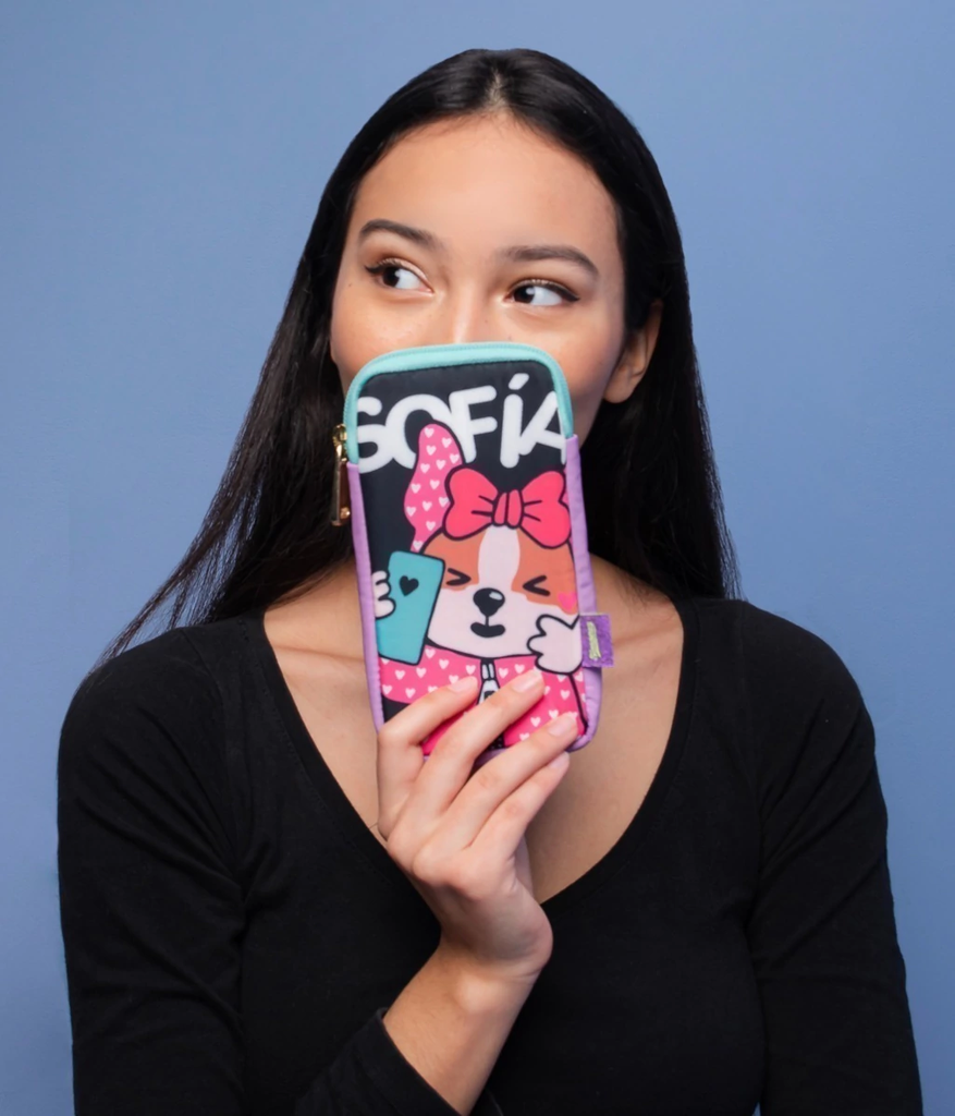 Ahora tu telefóno tiene un lugar mullidito para descansar. Este sobre de formato vertical de twill estampado y acolchado admite varios tamaños de Smart Phone. Y no importa si este sobre te queda en el fondo de la cartera, el cierre ayuda a que el teléfono no se escape y siempre se quede en su lugar!